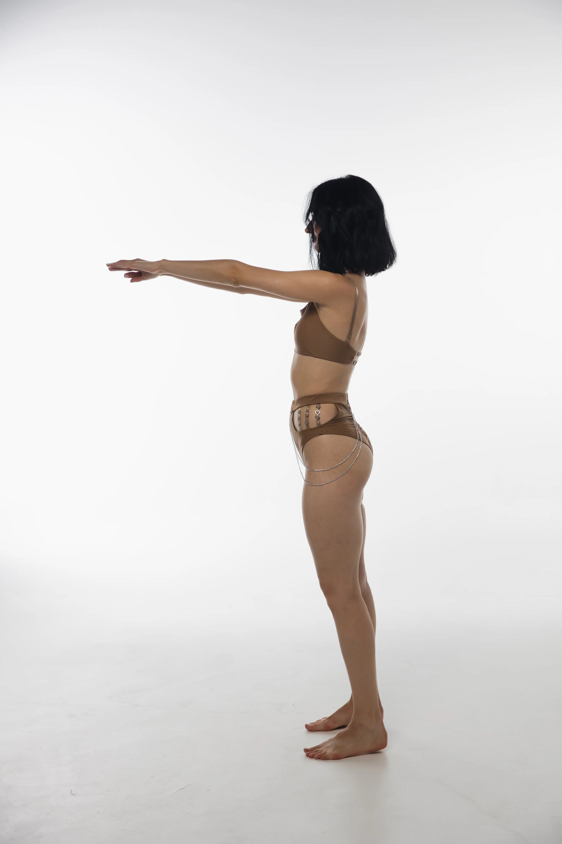 Haut avec découpe poitrine (sans rembourrage), bretelles réglables et finitions en nickel avec anneaux et cœurs.
